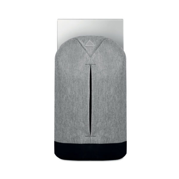 13 inch laptop backpack in 600D 2 tone polyester with outside pocket with zipper. Zipper main compartment on backside for better protection.