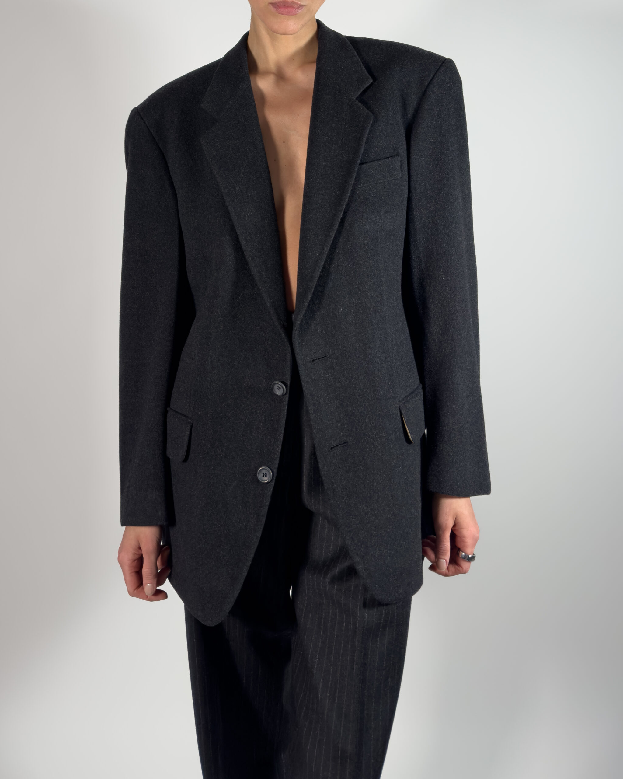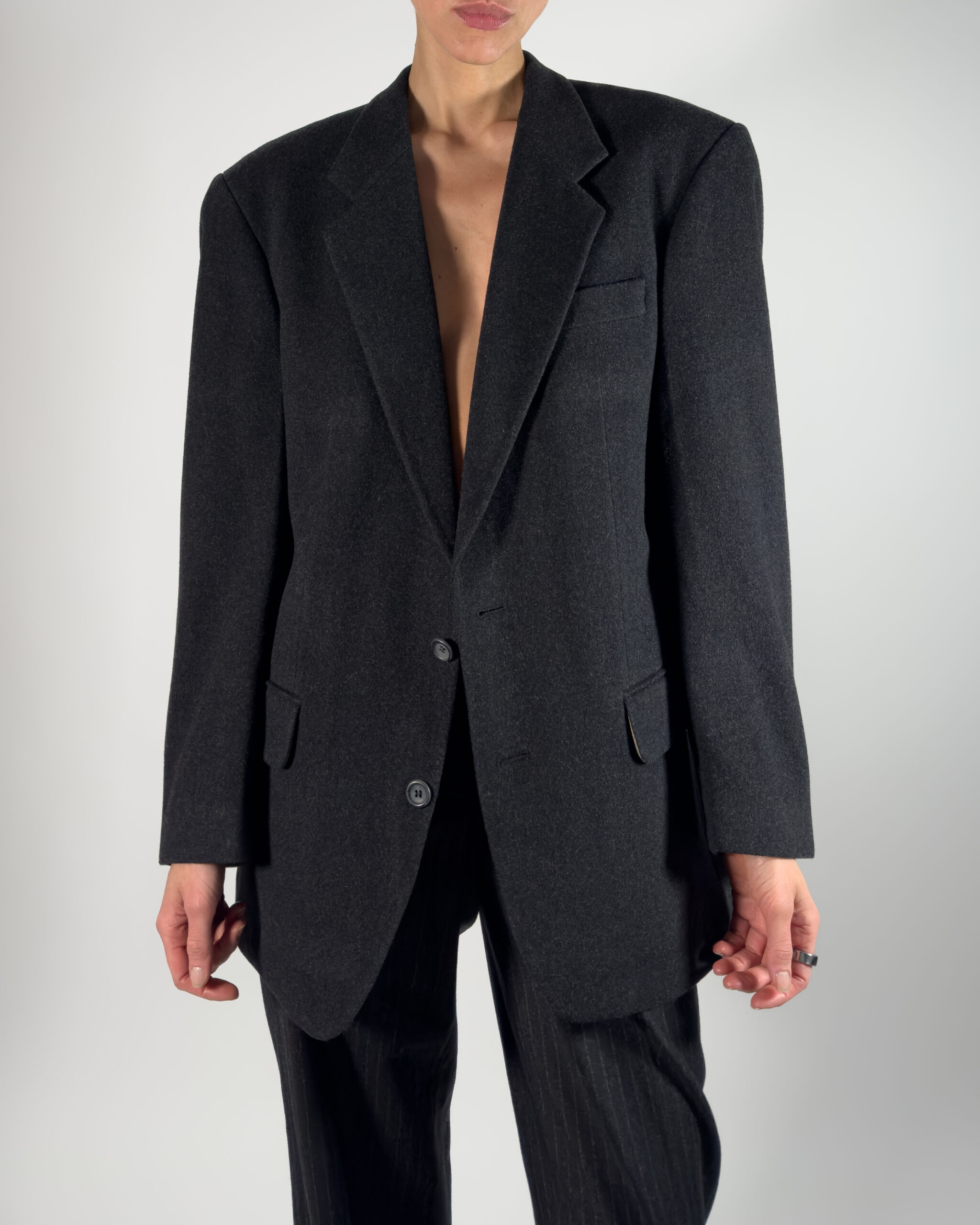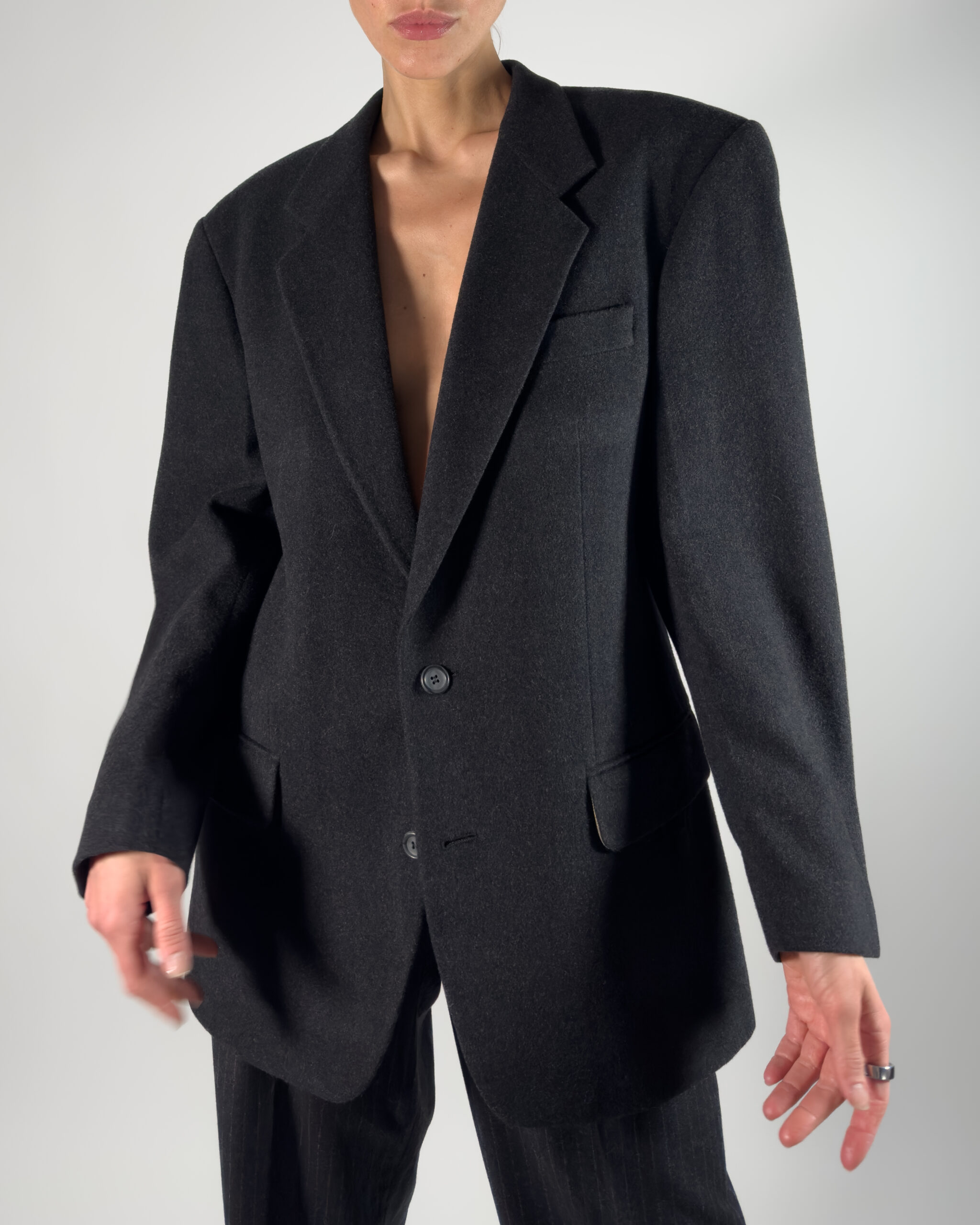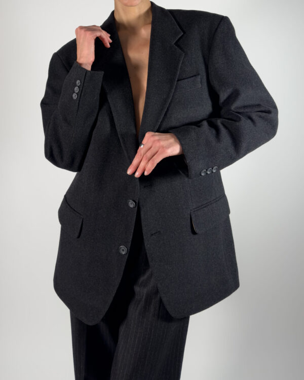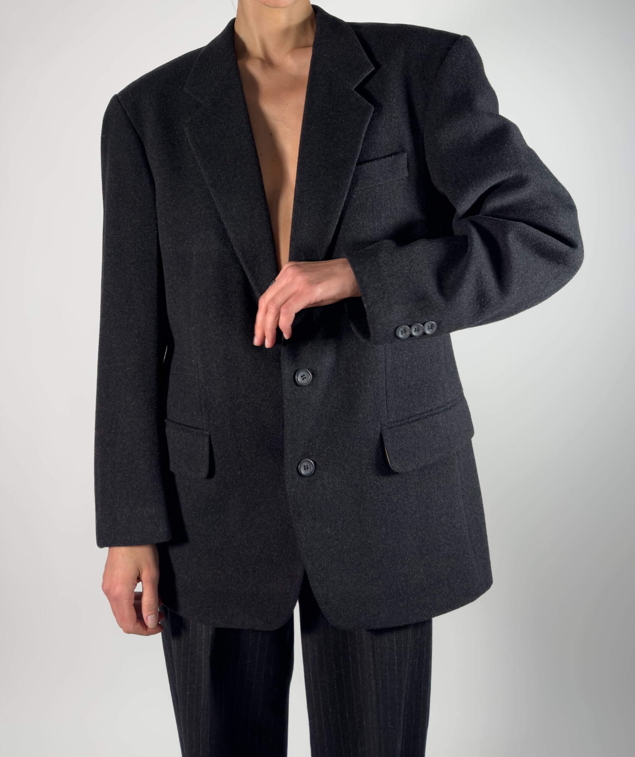 Dark grey blazer by Stones Classics, made from wool and cashmere blend. Designed with a structured fit, featuring a button-up closure, front pockets, and viscose lining.