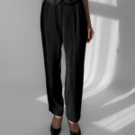 Classic black pleated suit trousers by Franco Callegari. Designed with belt loops, a front zipper closure, two front pockets and soft pleats. Perfect for office wear or paired with heels for an evening look.