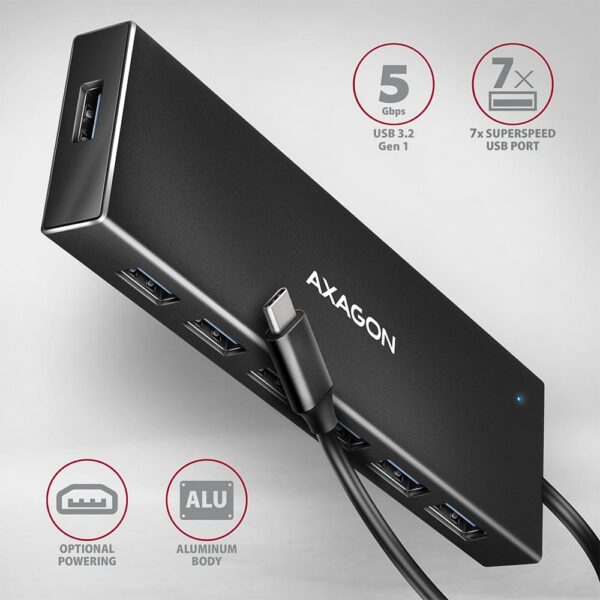 I/O HUB USB-C 7PORT FLAT/0.3M HUE-F7C AXAGON