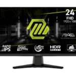 Model MAG 242F | 23.8″ | Gaming | Display Matte | Panel IPS | Resolution 1920×1080 | Form factor 16:9 | Refresh rate 200Hz | Brightness 300 | Contrast 1000:1 | Dynamic contrast (DCR) 100000000:1 | Response time 0.5 ms | Horizontal 178 degrees | Vertical 178 degrees | AMD FreeSync Premium | Kensington lock | Included Accessories 1x HDMI™ Cable (2.0), 1x Power Cord (C13), 1x Power adaptor, 1x Quick Guide | Colour Black