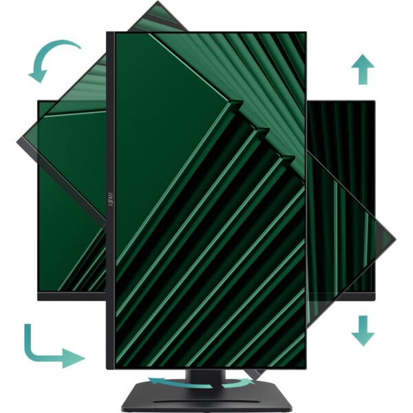 • SIMPLE YET FLEXIBLE – The monitor comes with 100mm VESA brackets for wall or arm mounting (e.g., MSI VESA Arm MT81), while the stand is 4-way adjustable ergonomic stand