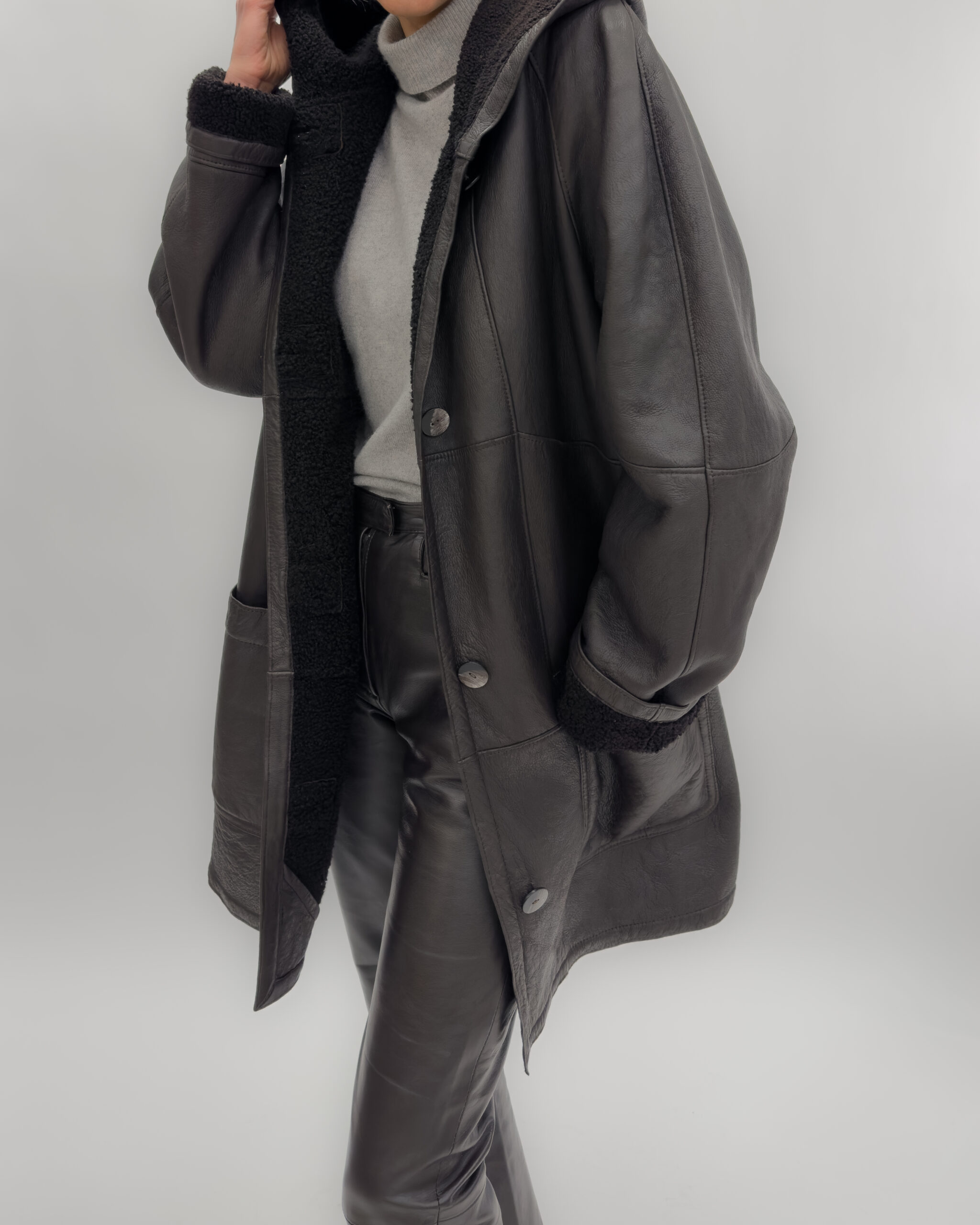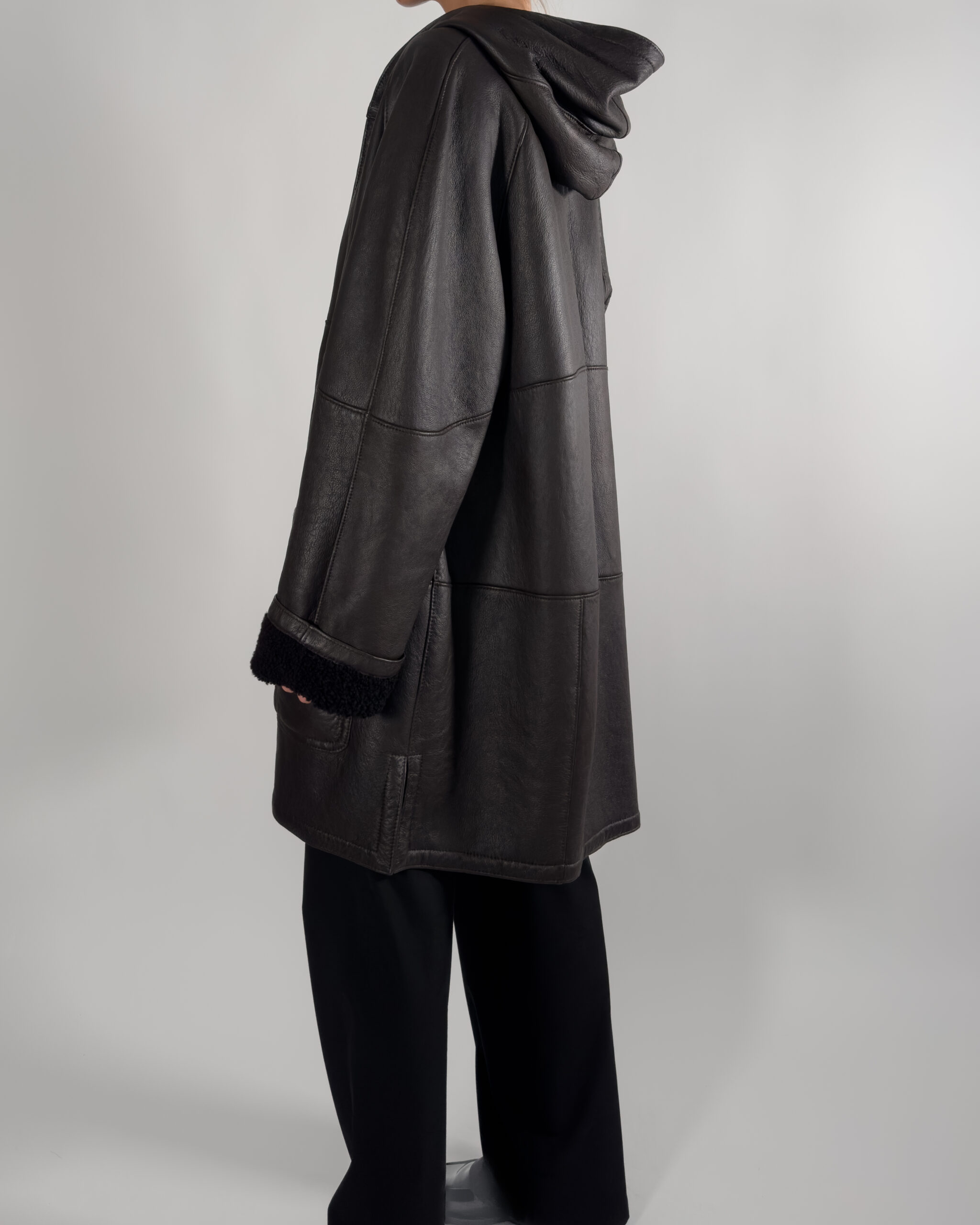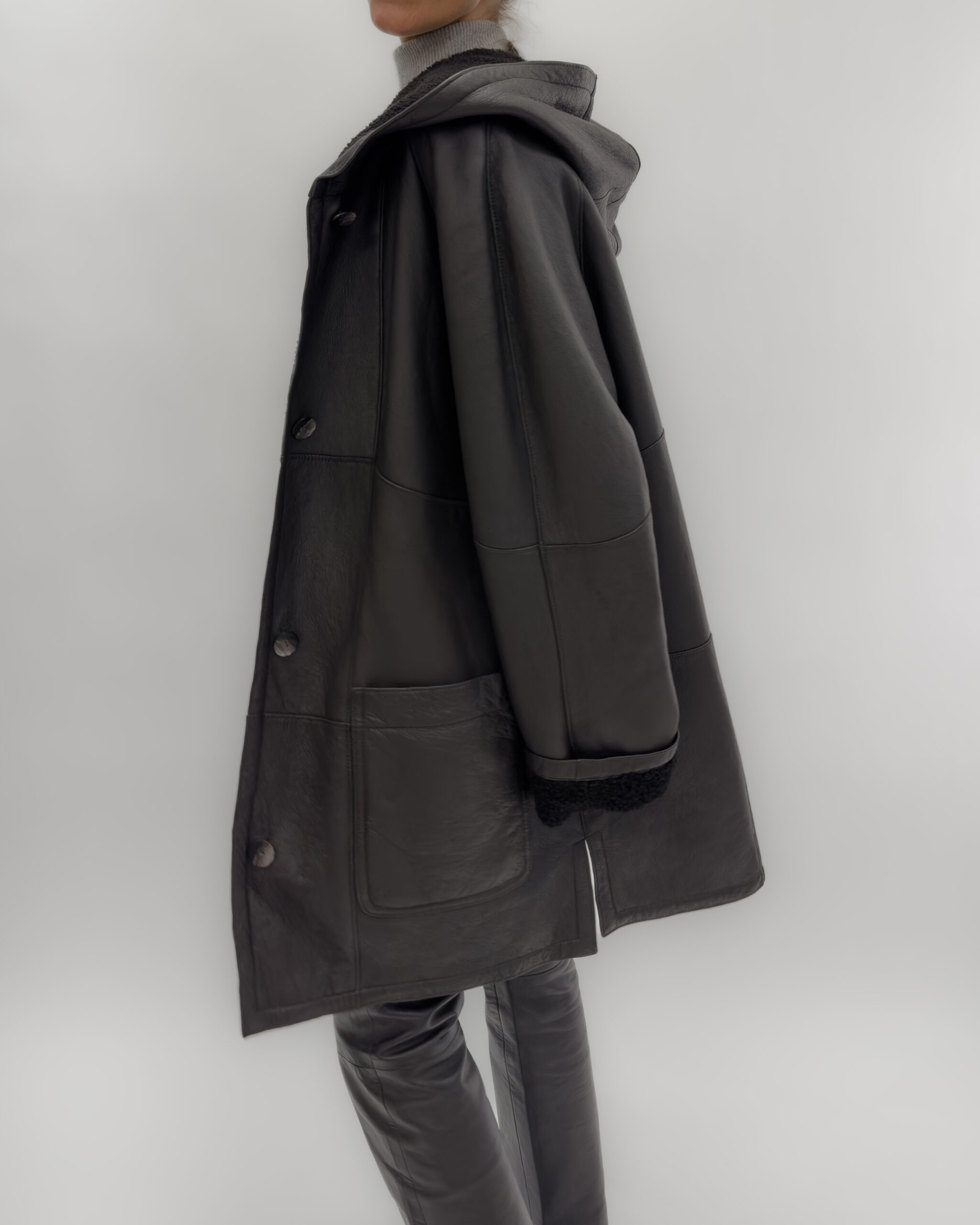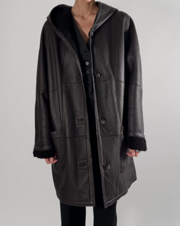 Leather Oversized Jacket/ Coat in Dark Brown