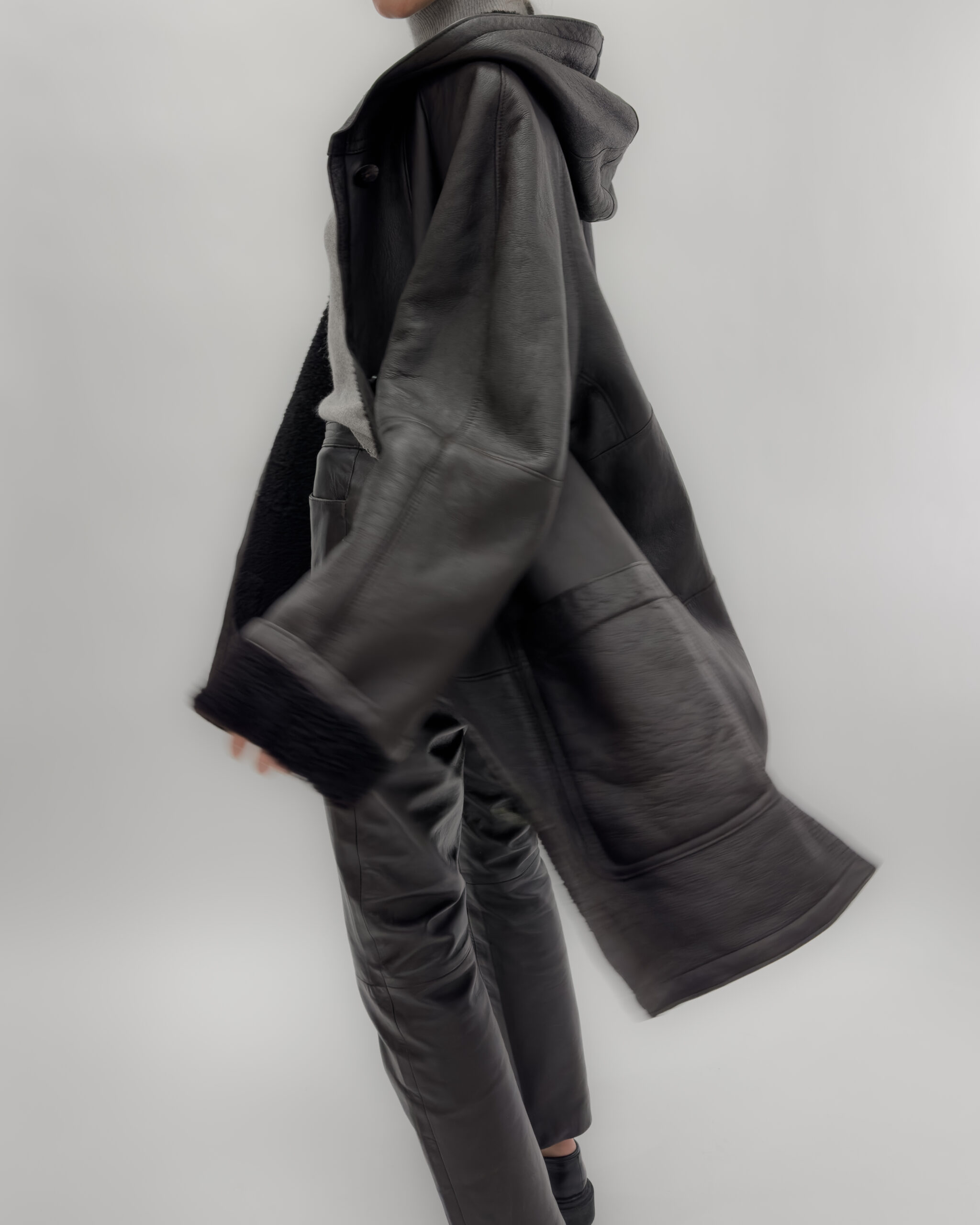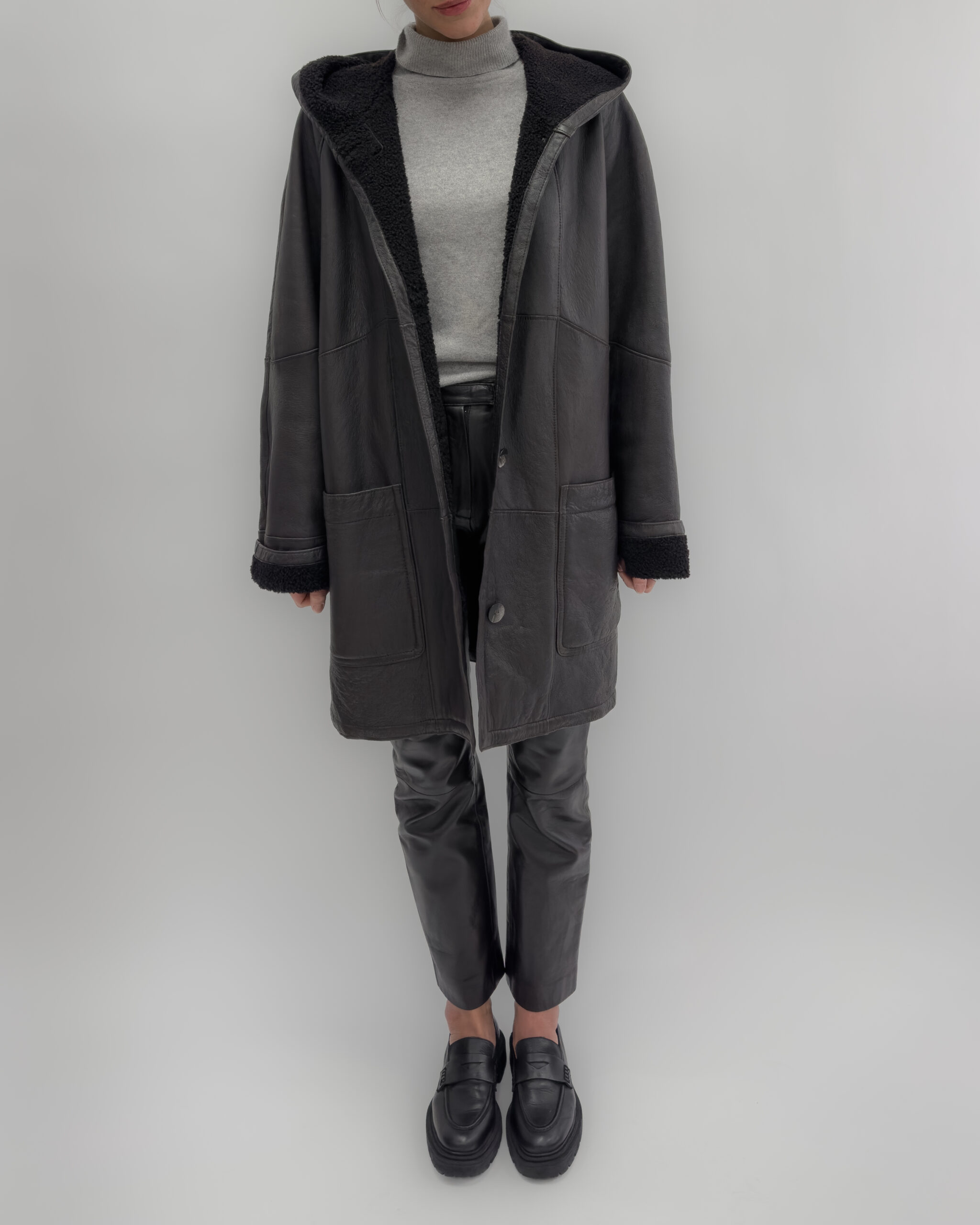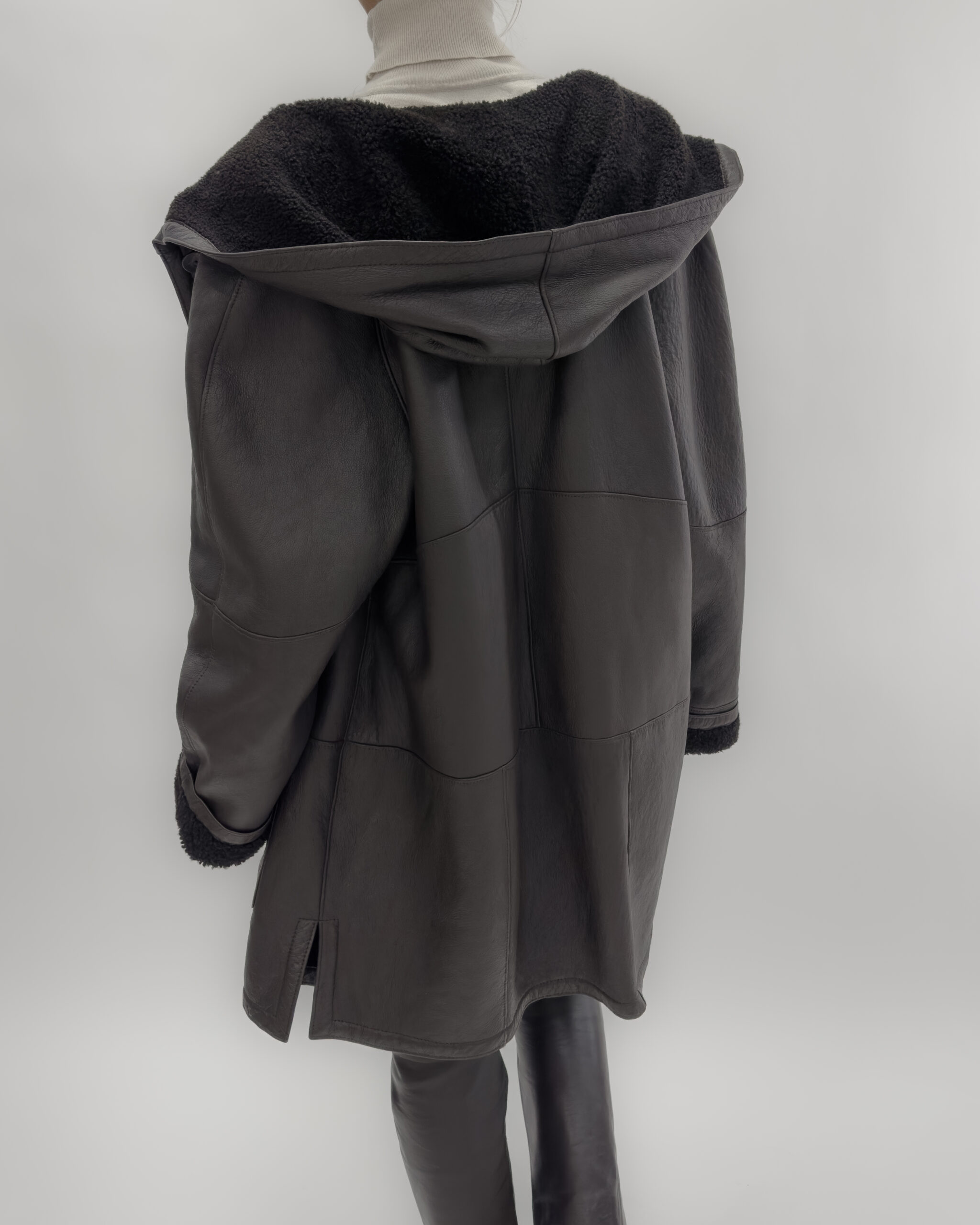 Leather Oversized Jacket/ Coat in Dark Brown