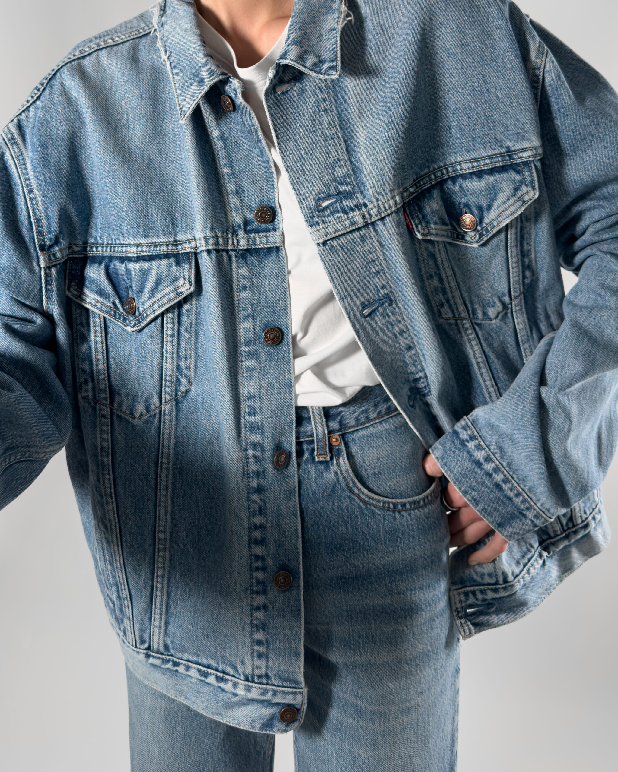 Levi’s denim jacket, in 100% cotton, offers a relaxed and oversized fit.