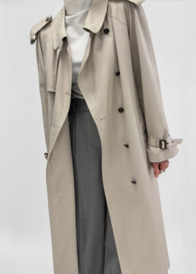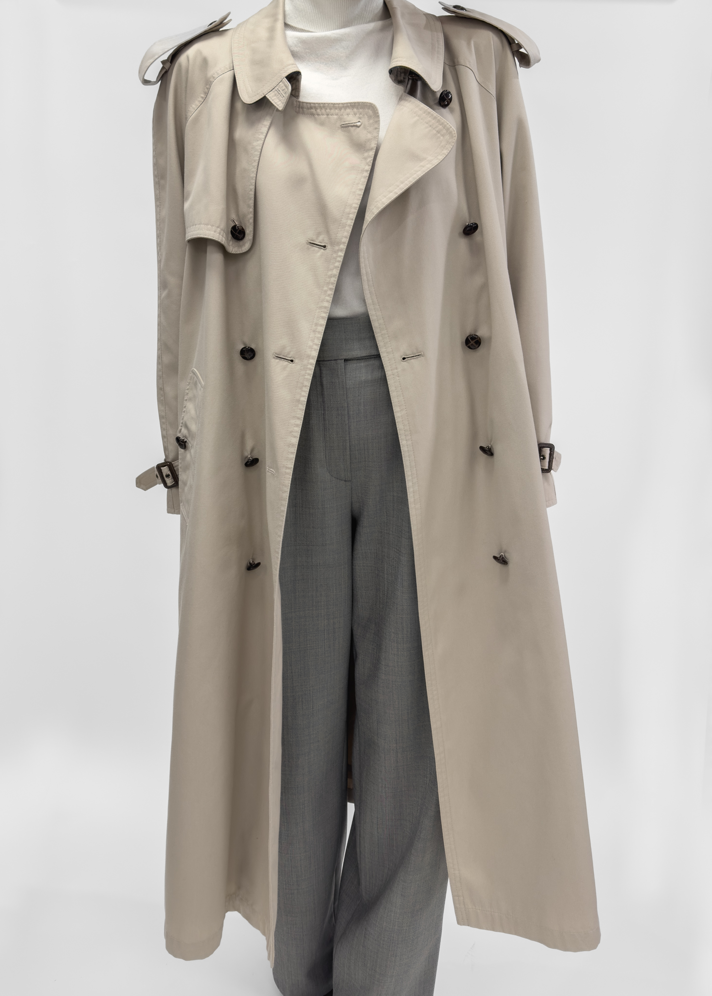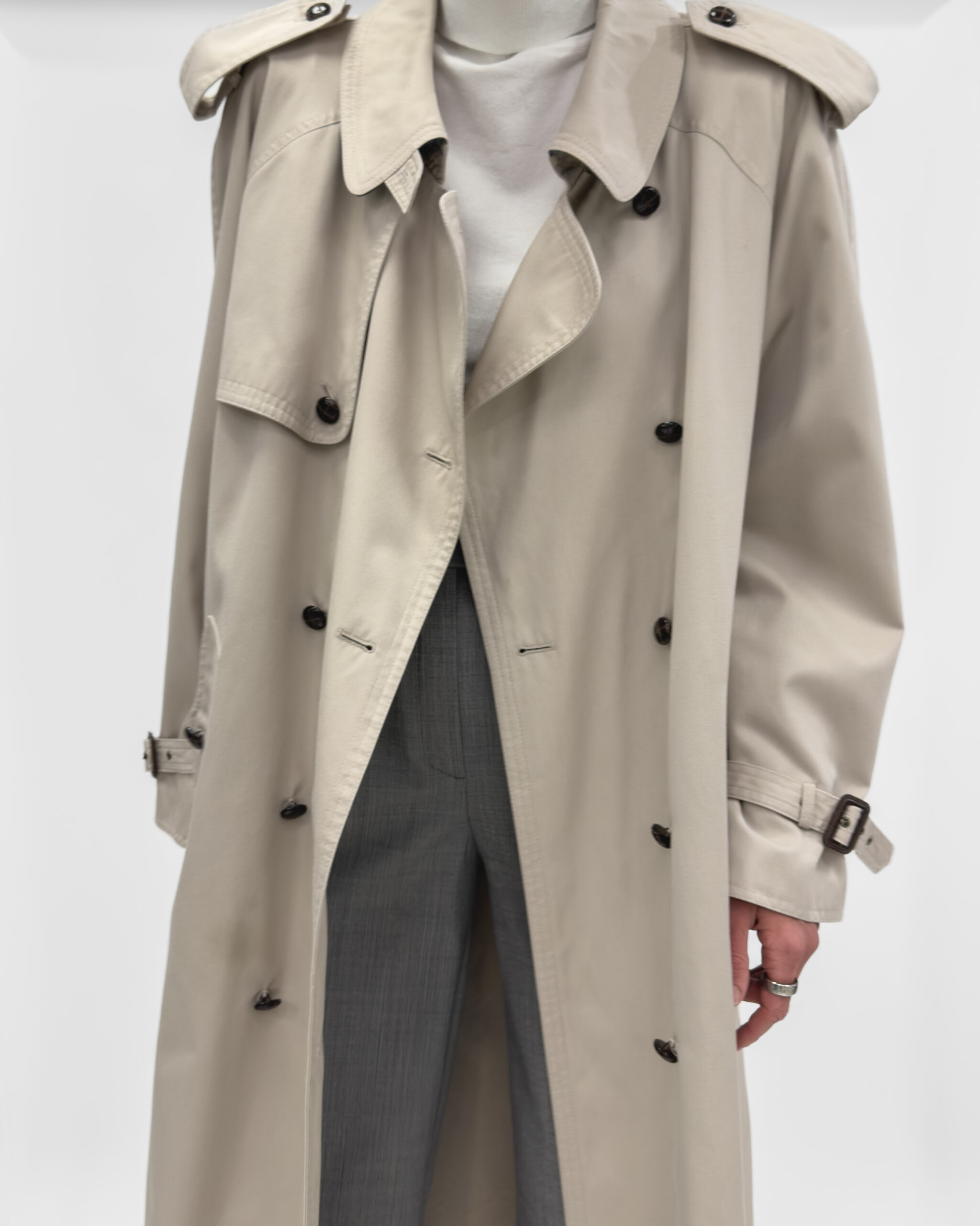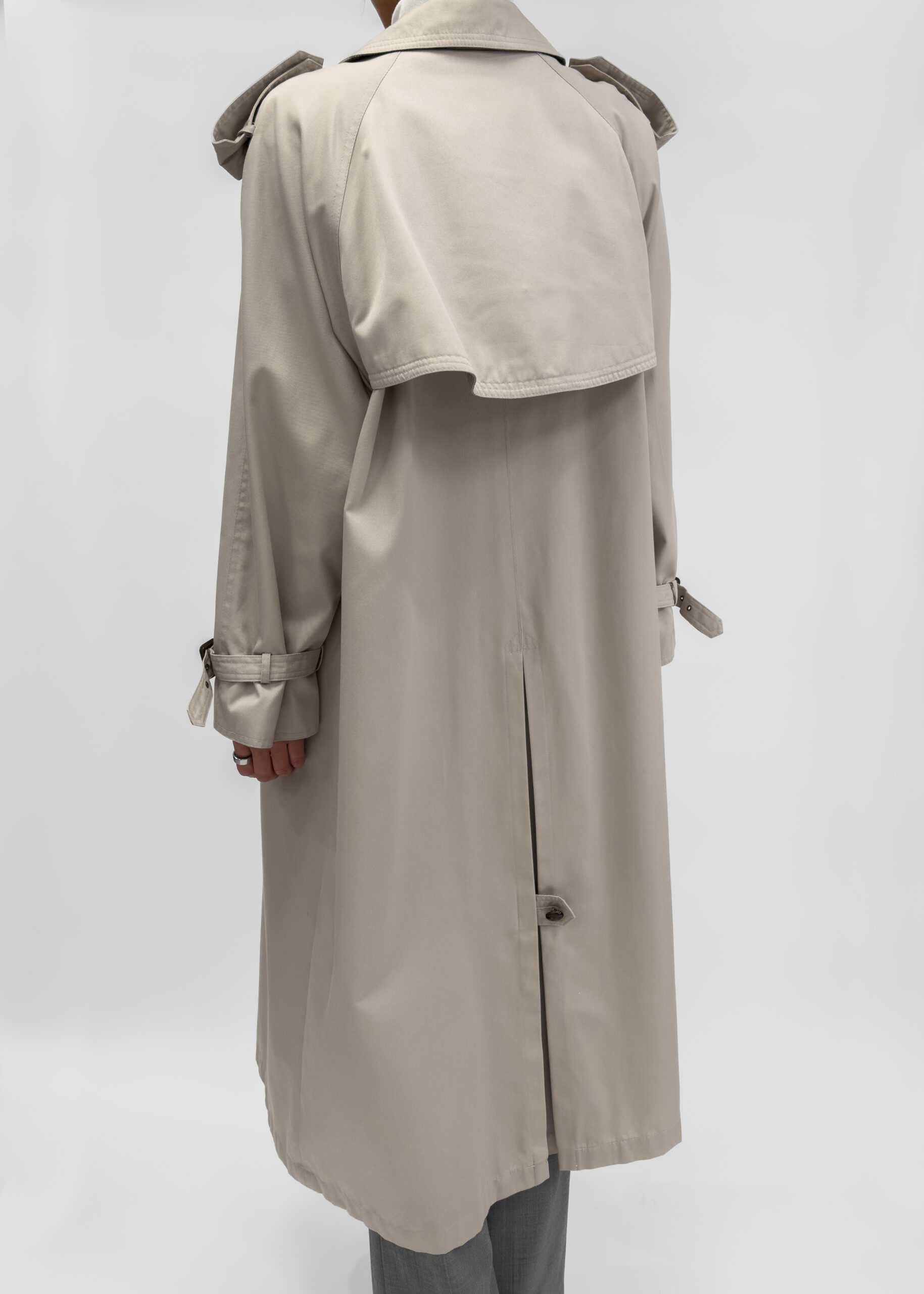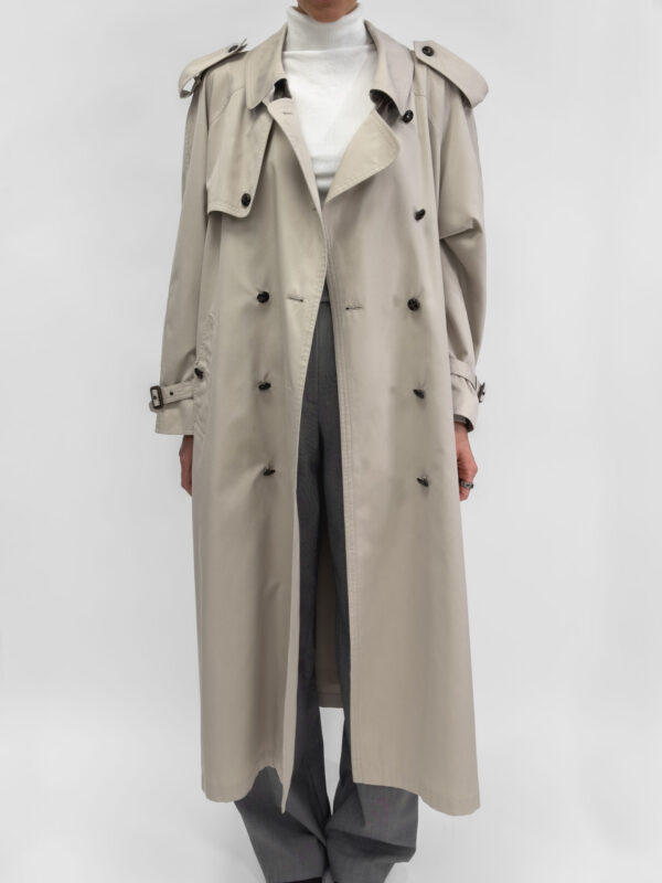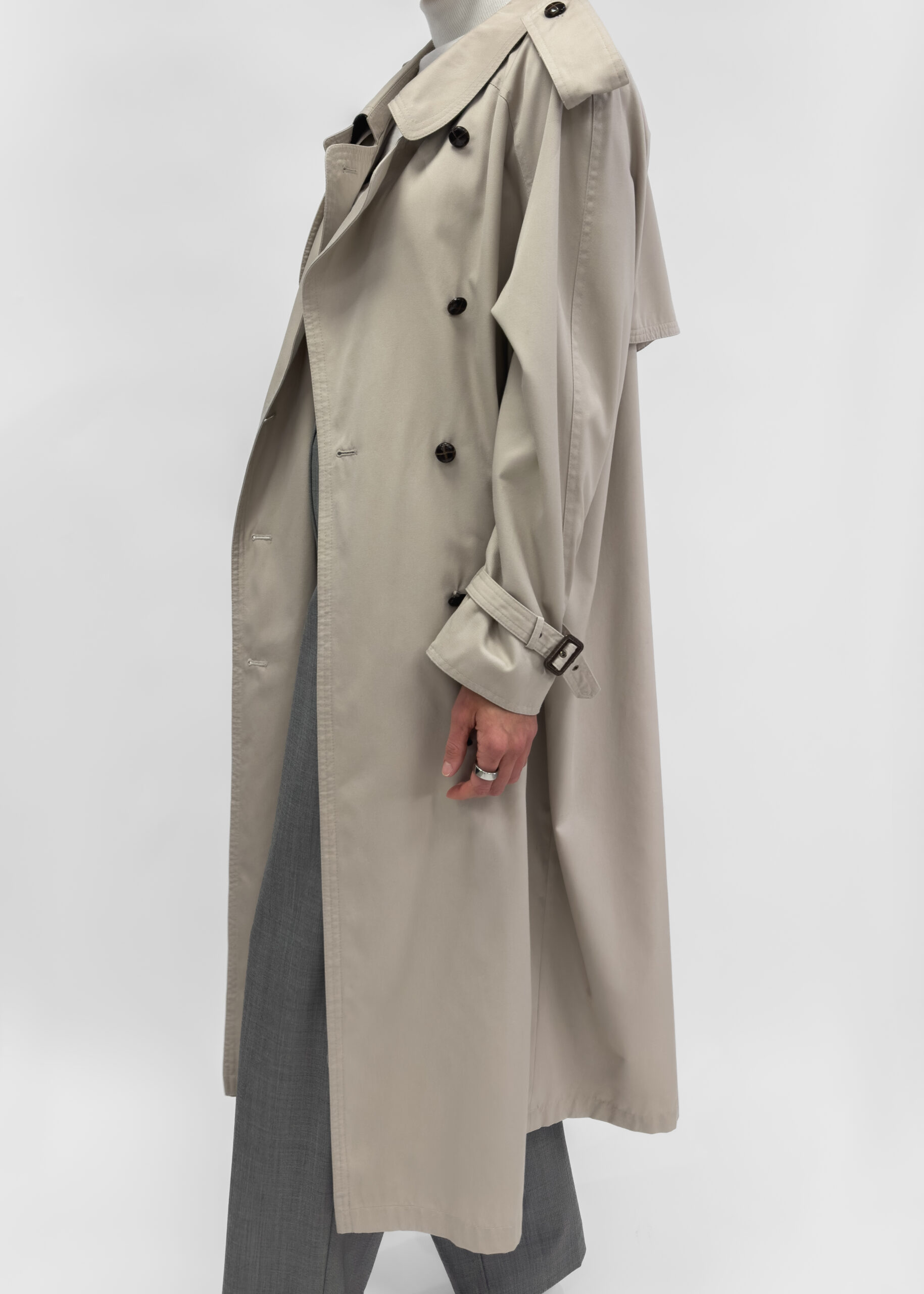 Double-breasted trench coat made by NUAGE from the 1990s. Fantastic oversized vintage coat in color beige with brown buttons. In excellent condition, no signs of wear. Perfect for spring and autumn/fall.