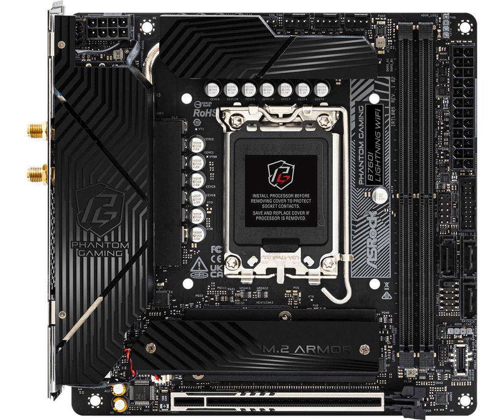 Mainboard|ASROCK|Intel B760 Express|LGA1700|Mini-ITX|Memory DDR5|Memory slots 2|1xPCI-Express 5.0 16x|3xM.2|1xHDMI|1xDisplayPort|5xUSB 3.2|1xUSB-C|1xOptical S/PDIF|1xRJ45|2xAudio port|B760ILIGHTNINGWIFI