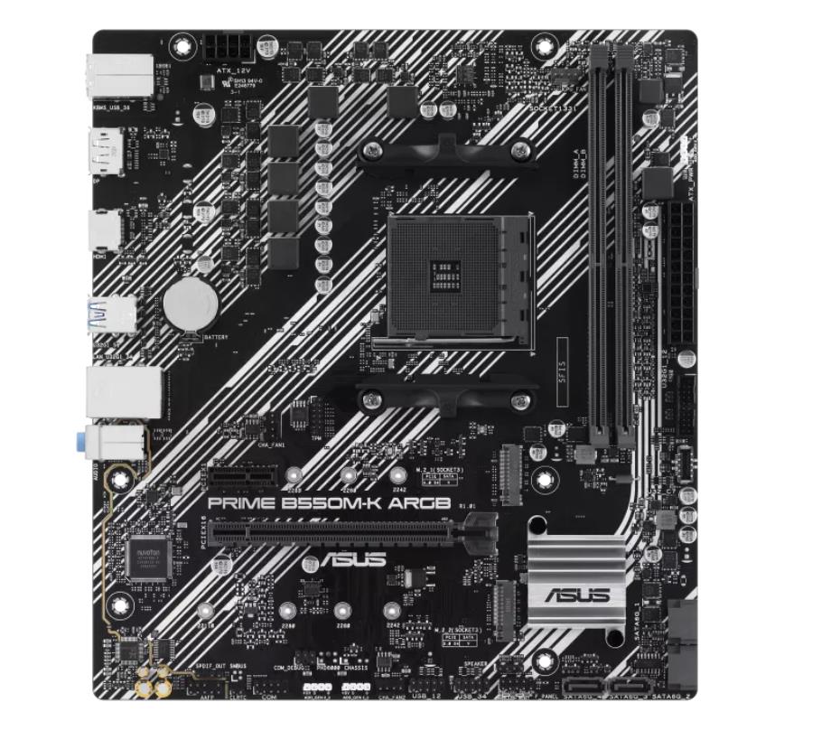Mainboard|ASUS|AMD B550|SAM4|Micro-ATX|Memory DDR4|Memory slots 2|1xPCI-Express 3.0 1x|1xPCI-Express 3.0 16x|1xPCI-Express 4.0 16x|1xM.2|1xHDMI|1xDisplayPort|1xAudio-In|1xAudio-Out|1xMicrophone|2xUSB 2.0|4xUSB 3.2|1xPS/2|1xRJ45|PRIMEB550M-KARGB