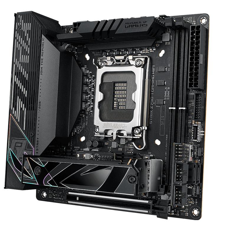 Mainboard|ASUS|Intel Z790|MiniITX|Memory DDR5|Memory slots 2|1xPCI-Express 5.0 16x|2xM.2|1xHDMI|2xUSB 2.0|4xUSB 3.2|1xUSB-C|2xUSB-C w/Thunderbolt|1xRJ45|ROGSTRIXZ790-IGAMWIFI
