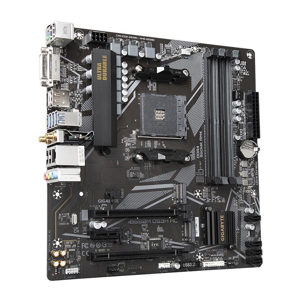 Mainboard|GIGABYTE|AMD B550|SAM4|Micro-ATX|Memory DDR4|Memory slots 4|1xPCI-Express 3.0 1x|1xPCI-Express 3.0 4x|1xPCI-Express 4.0 16x|2xM.2|1xDVI-D|1xHDMI|1xDisplayPort|4xUSB 2.0|4xUSB 3.2|1xPS/2|1xRJ45|3xAudio port|B550MDS3HAC1.7