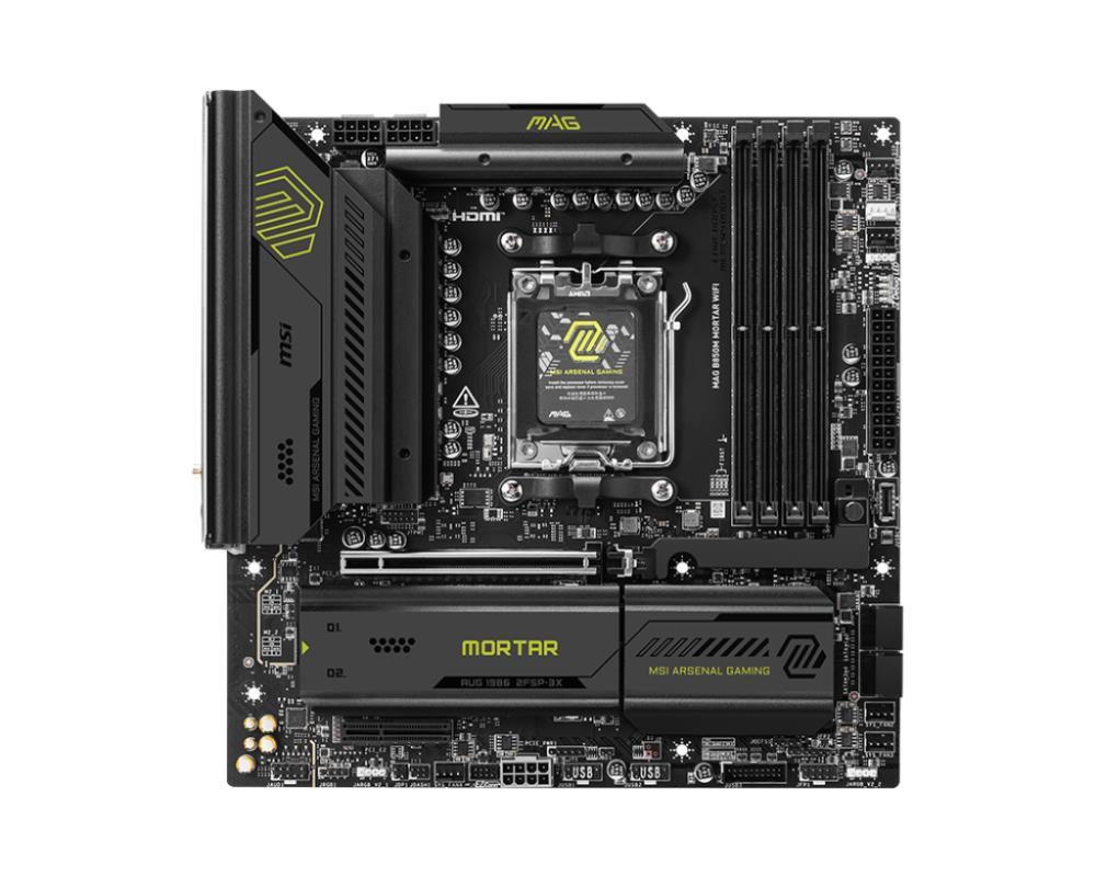 Mainboard|MSI|AMD B850|SAM5|Micro-ATX|Memory DDR5|Memory slots 4|1xPCI-Express 4.0 4x |1xPCI-Express 4.0 8x|1xPCI-Express 4.0 16x|1xPCI-Express 5.0 16x|3xM.2|1xHDMI|3xUSB 2.0|4xUSB 3.2|2xUSB-C|1xOptical S/PDIF|1xRJ45|2xAudio port|MAGB850MMORTARWIFI