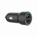 2-port USB car fast charger, Type-C PD, 20 W, black