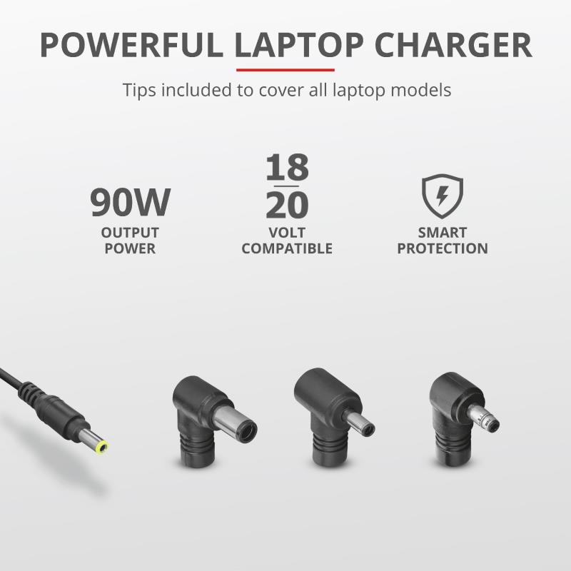 – Compatible with laptops that require 18-20 Volt and 90 Watt power or less