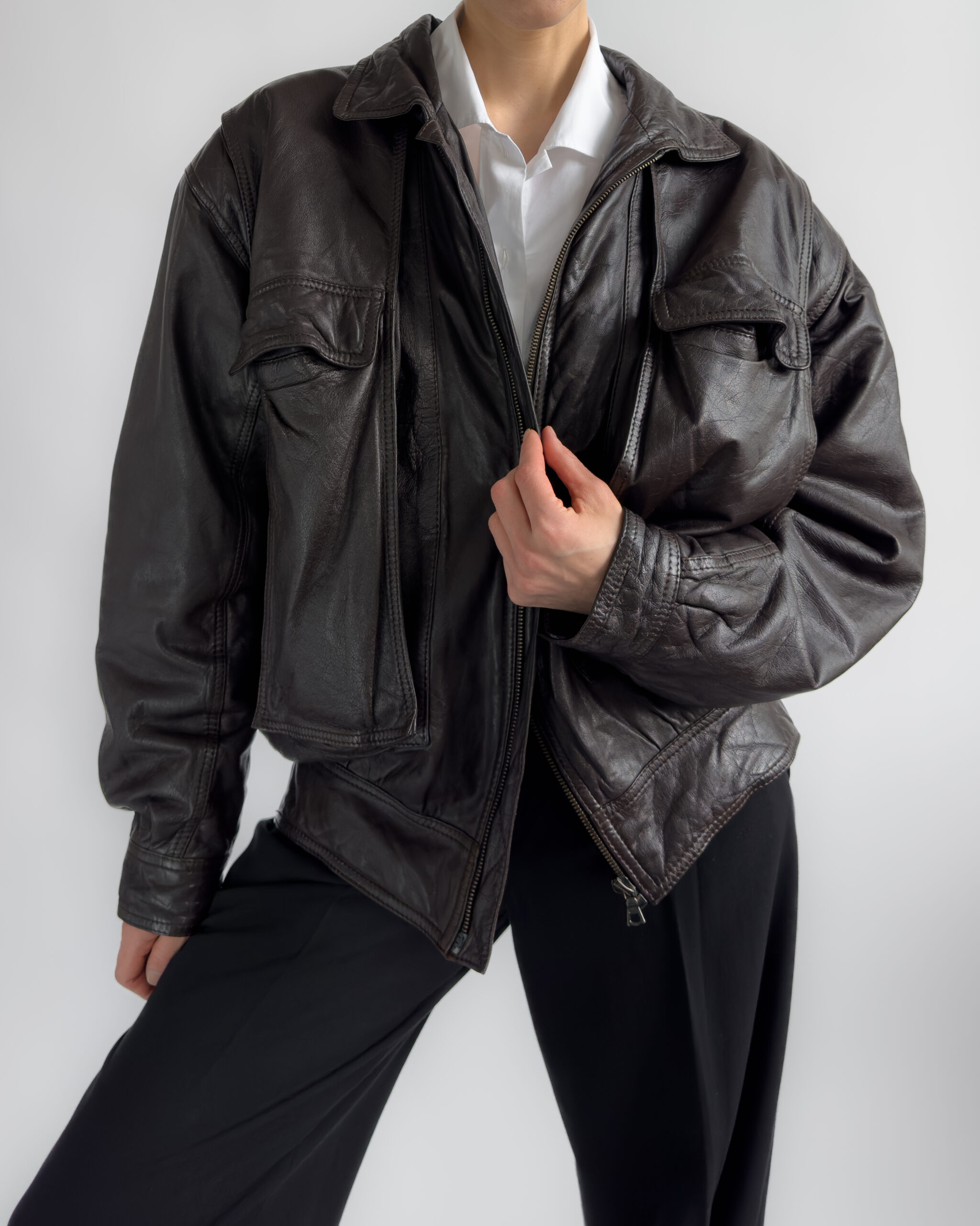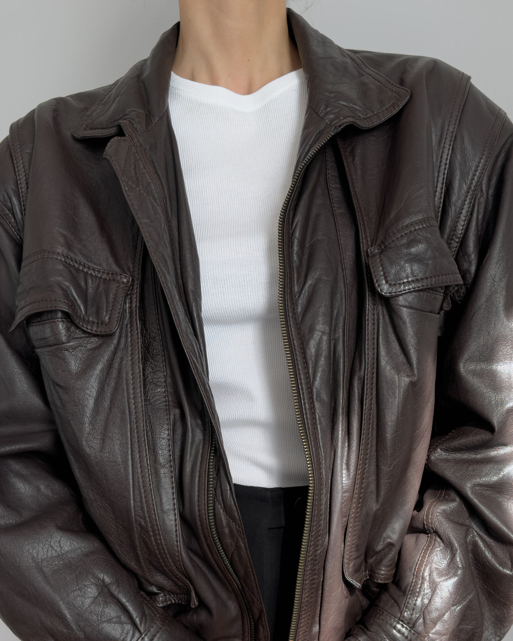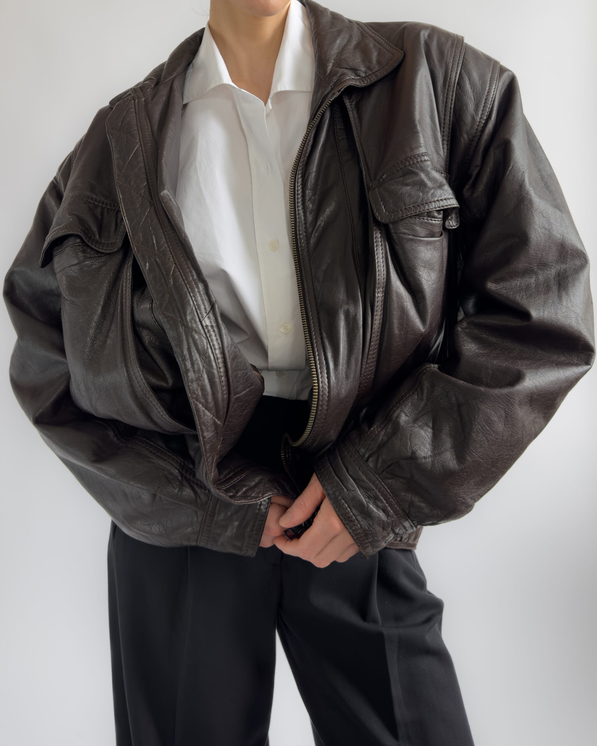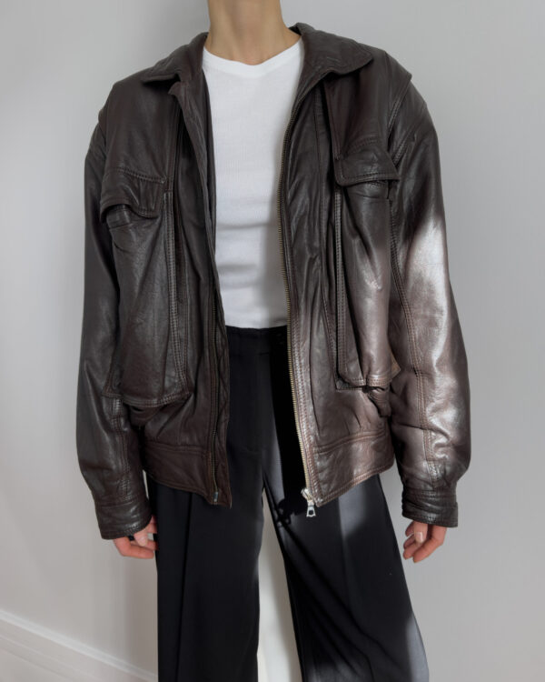 Made from lambs leather, this bomber jacket features a relaxed, cocoon-like silhouette with exaggerated volume.