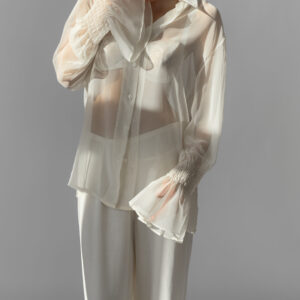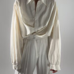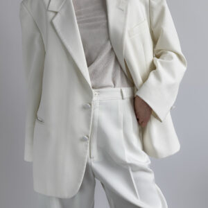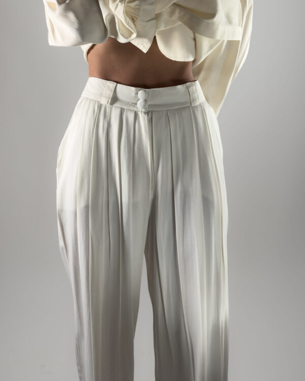 Elegant high-rise trousers in cream white. Designed with pleats, belt holes and front pockets.