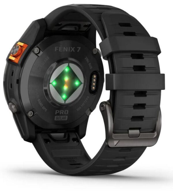 fenix 7 Pro – Solar Edition | Screen 1.3″ | Resolution 260 x 260 | Wireless connections WLAN/Bluetooth | Memory 32 GB | GPS | Colour Black | Dimensions 47 x 47 x 14.5 mm | Weight 0.079 kg