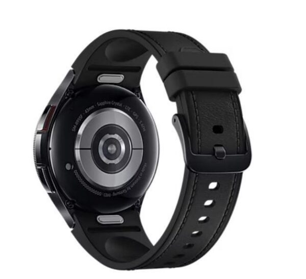 Galaxy Watch6 Classic | Screen 1.5″ | Display technology Super AMOLED | Resolution 480 x 480 | Wireless connections WLAN/Bluetooth/LTE/NFC | CPU Dual-core 1.4 GHz Cortex-A55 | Memory 16GB 2GB RAM | GPS | Colour Black | Battery capacity 425 mAh | Dimensions 46.5 x 46.5 x 10.9 mm | Weight 0.059 kg