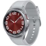 Galaxy Watch6 Classic | Screen 1.5″ | Display technology Super AMOLED | Resolution 480 x 480 | Wireless connections WLAN/Bluetooth/LTE/NFC | CPU Dual-core 1.4 GHz Cortex-A55 | Memory 16GB 2GB RAM | GPS | Colour Silver | Battery capacity 425 mAh | Dimensions 46.5 x 46.5 x 10.9 mm | Weight 0.059 kg