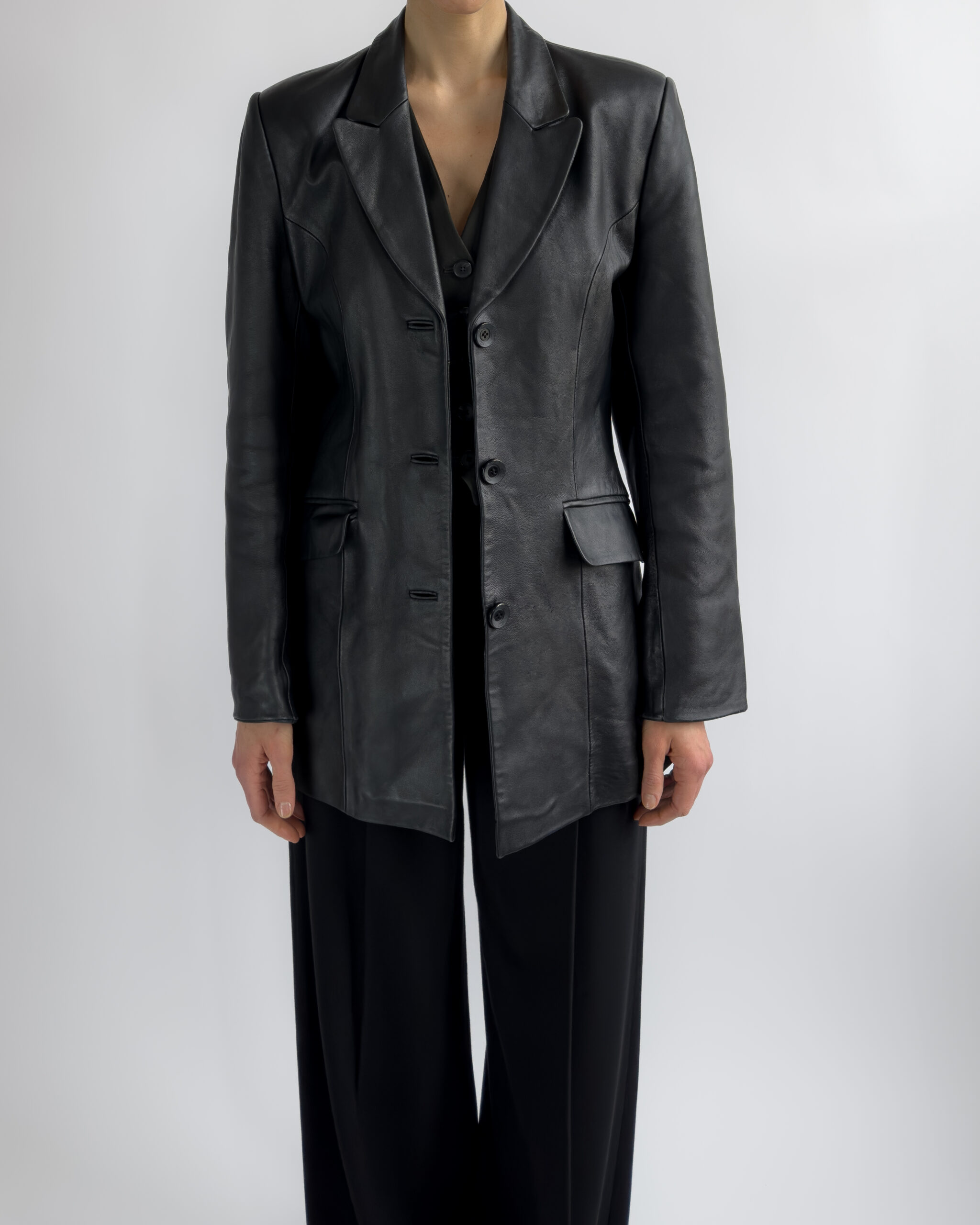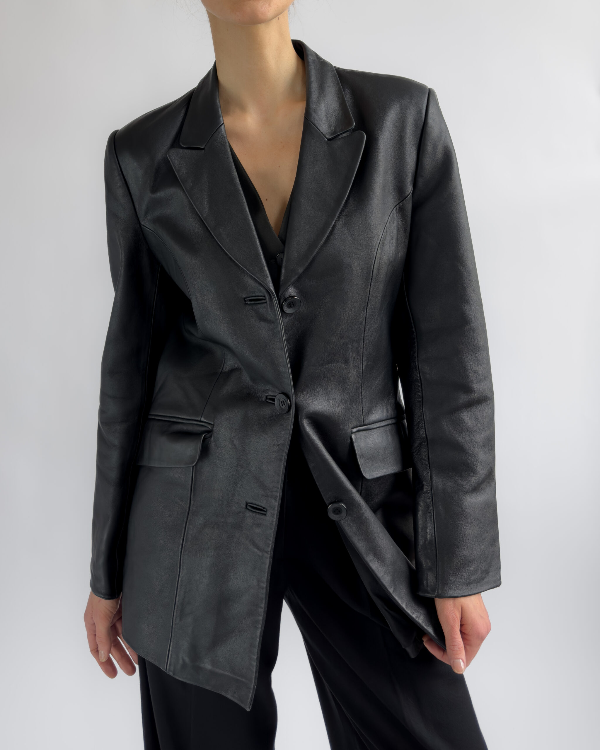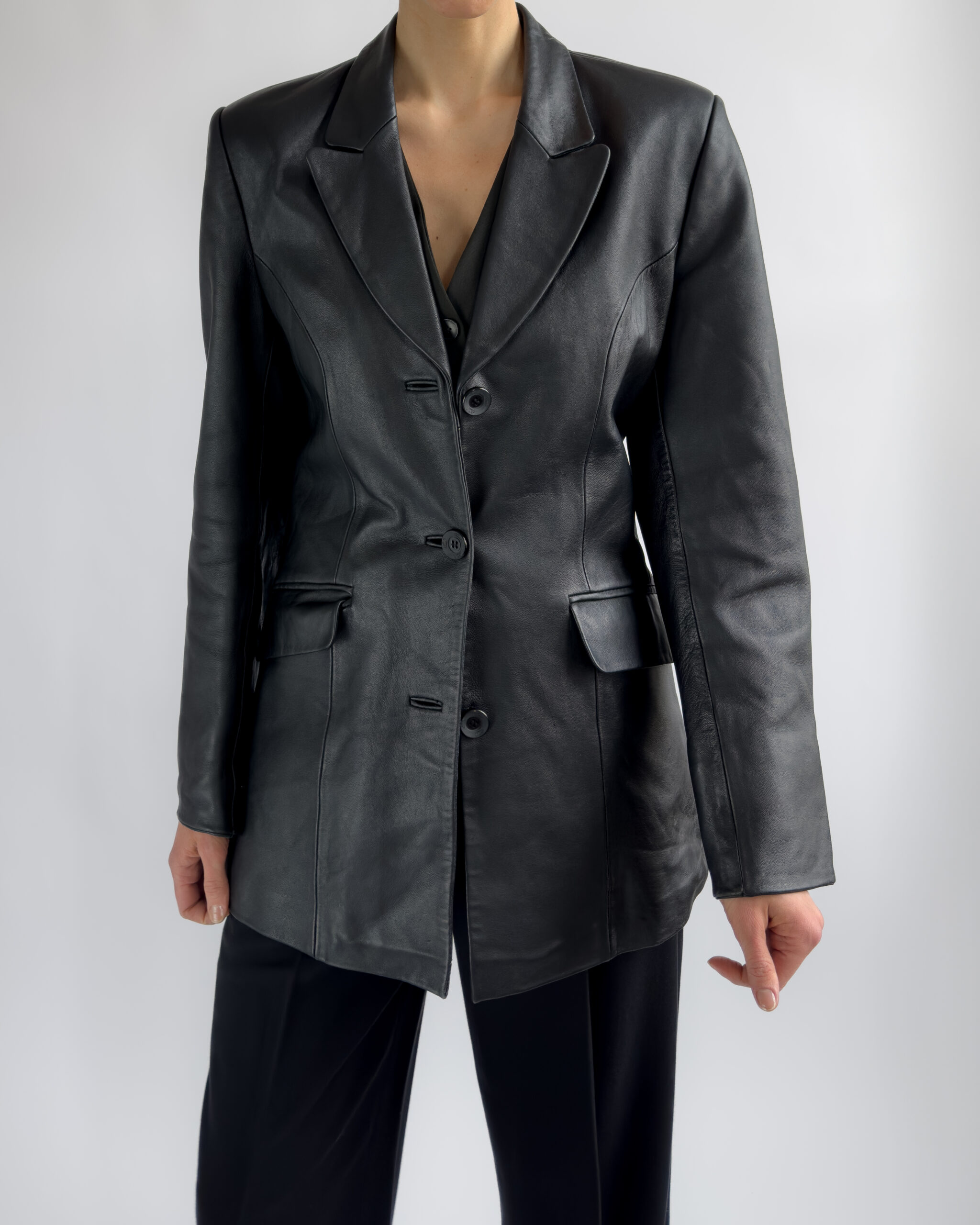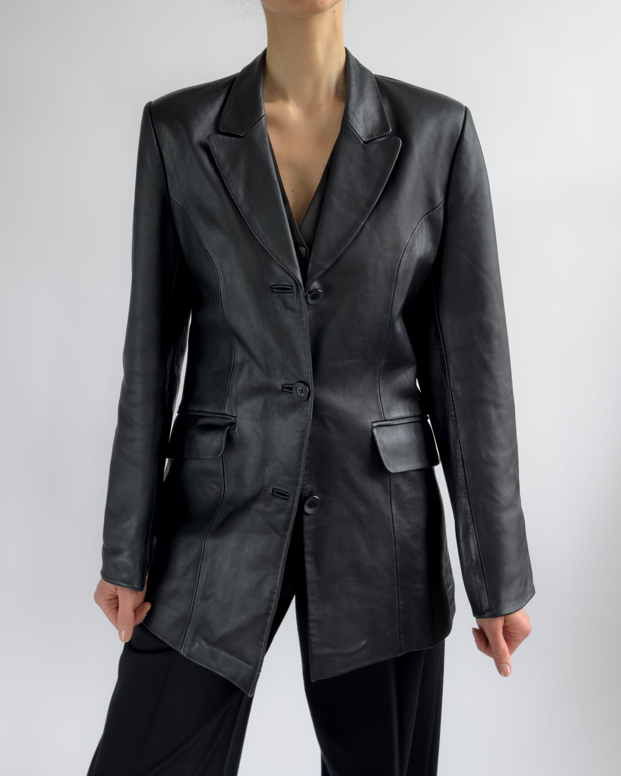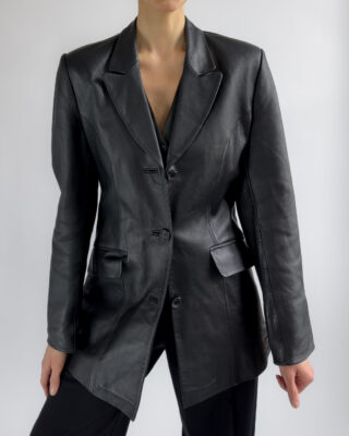 Structured Leather Blazer | Black
